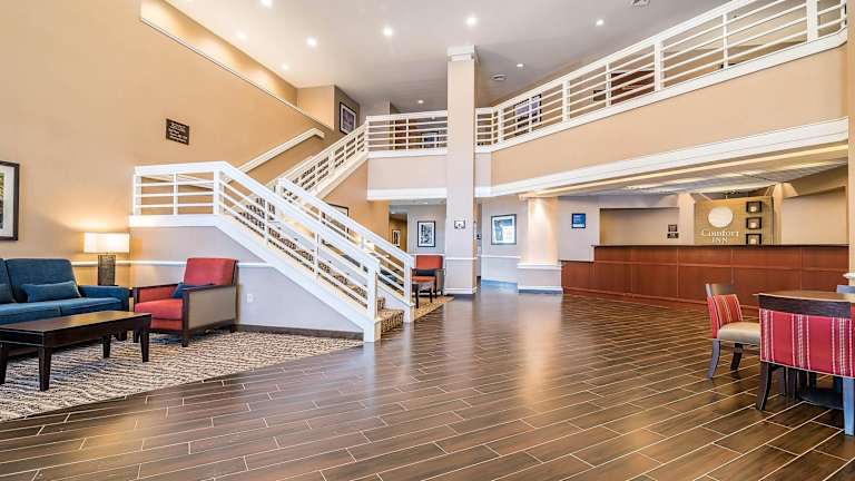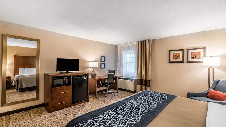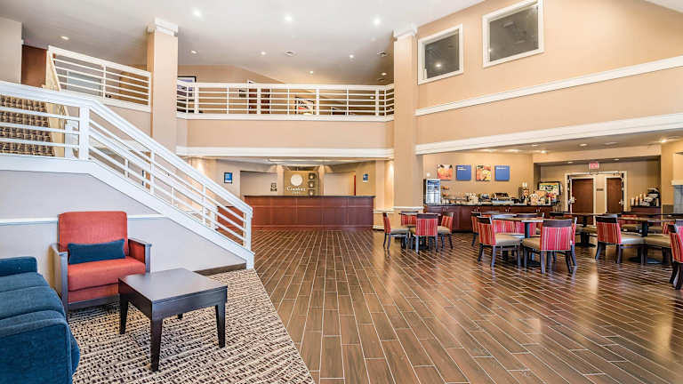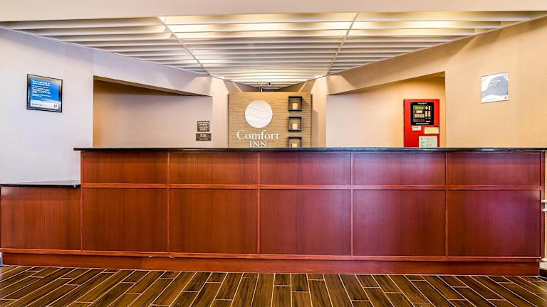 Im Comfort Inn wird ein reichhaltiges Frühstücksbuffet angeboten, das unter anderem Eier, Fleisch, frisches Obst, Joghurt sowie eine Auswahl an warmen Waffeln umfasst. Es gibt die Möglichkeit, Übernachtungen mit Frühstück zu buchen.