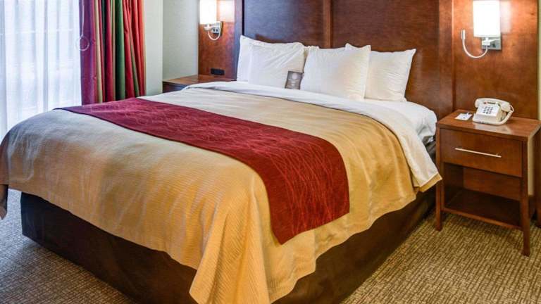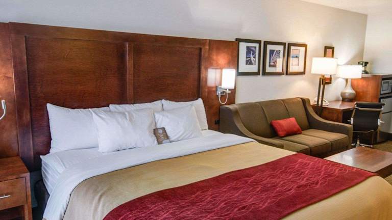 Die Zimmer im Comfort Inn Redding Hotel sind geräumig und bieten alle Annehmlichkeiten, die Sie für einen komfortablen Aufenthalt benötigen. Jedes Zimmer verfügt über einen Flachbild-TV, Ladestationen, eine Mikrowelle, eine Kaffeemaschine mit kostenlosem Kaffee, einen Kühlschrank, einen Haartrockner und ein Bügeleisen/-brett. Nichtraucherzimmer sind auf Anfrage verfügbar. Einige Zimmer verfügen auch über ein Schlafsofa für zusätzlichen Komfort.
