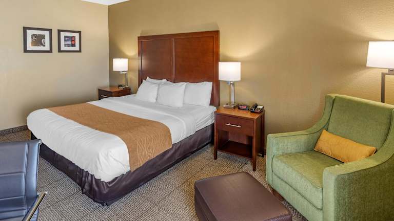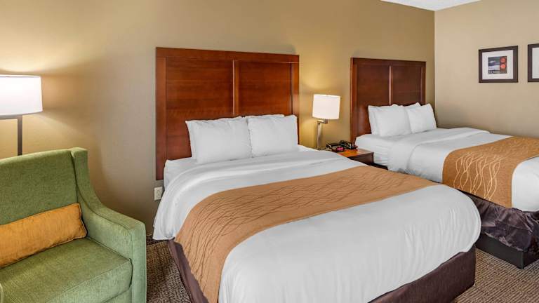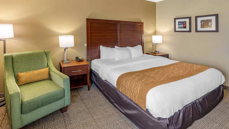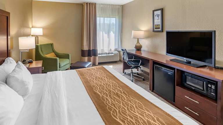Die geräumigen Zimmer im Comfort Inn bieten alles, was Sie für einen angenehmen Aufenthalt benötigen. Sie verfügen über Kühlschränke, Mikrowellen, Voicemail, Kaffeemaschinen, Bügeleisen, Bügelbrett, Haartrockner und Kabel-TV. Nichtraucherzimmer sind auf Anfrage verfügbar und Wäschemöglichkeiten stehen ebenfalls zur Verfügung.