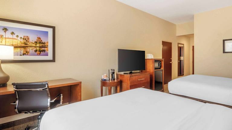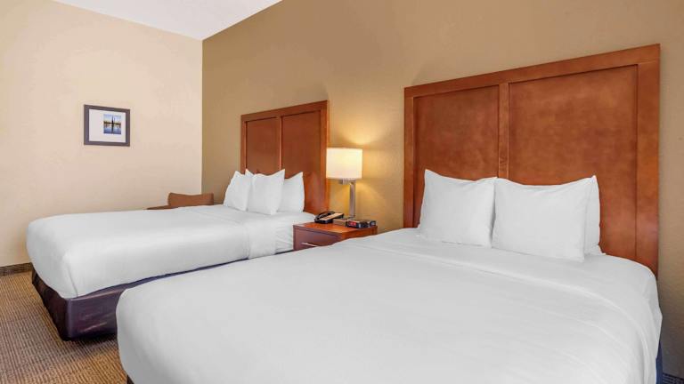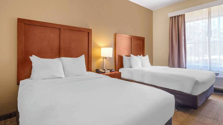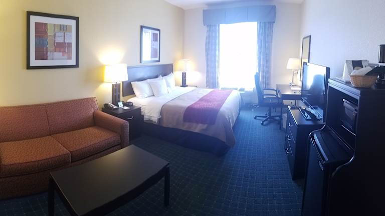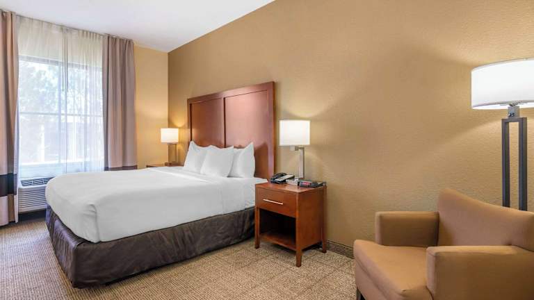 Die klimatisierten Zimmer im Comfort Inn & Suites sind gemütlich und mit dunklen Holzmöbeln eingerichtet. Jedes Zimmer verfügt über einen Flachbild-Kabel-TV, eine iPod-Dockingstation, einen Kühlschrank und Kaffee- und Teezubehör. Für zusätzlichen Komfort stehen den Gästen eine Mikrowelle und eine Whirlwanne zur Verfügung.