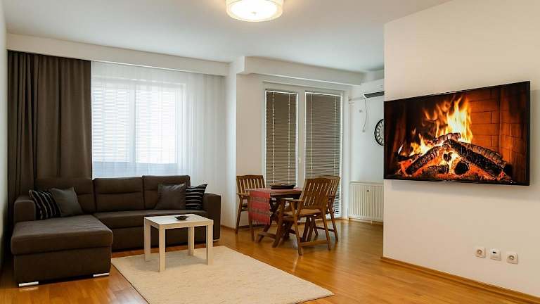 Die Ferienwohnung verfügt über eine Klimaanlage und besteht aus zwei separaten Schlafzimmern, einem Wohnzimmer, einer voll ausgestatteten Küche sowie einem Badezimmer. Zudem ist ein Flachbild-TV vorhanden. Die Unterkunft bietet Nichtraucherzimmer und Familienzimmer.