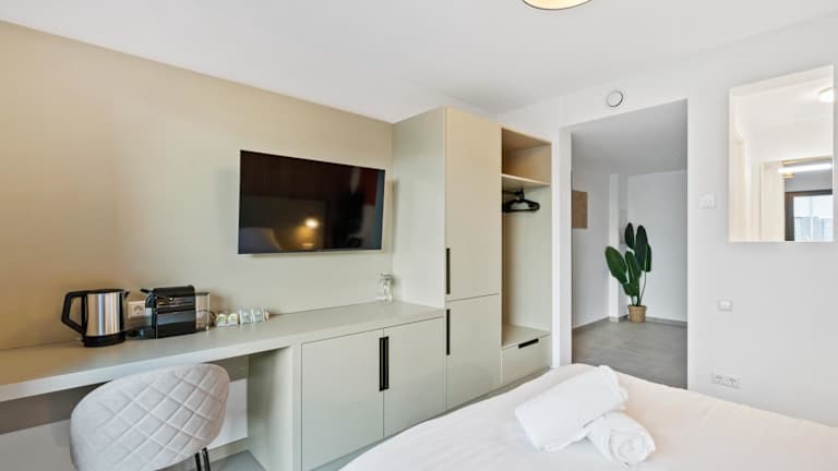 Die Zimmer sind mit einem Schreibtisch, einem Flachbild-TV, einem eigenen Badezimmer, Bettwäsche und Handtüchern ausgestattet. Jedes Zimmer bietet zudem eine Kaffeemaschine und einen Kühlschrank. Einige Zimmer verfügen über einen Balkon, während andere einen Stadtblick bieten.