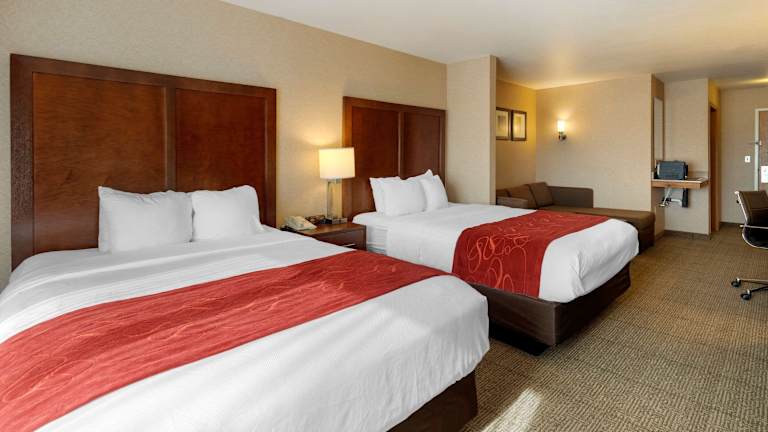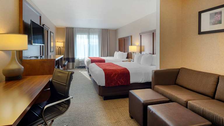 Das Comfort Suites Anchorage International Airport Hotel verfügt über 78 Nichtraucherzimmer auf 3 Etagen, die mit einem Aufzug erreichbar sind. Alle Zimmer sind gut ausgestattet und verfügen über Annehmlichkeiten wie Klimaanlage, Kühlschrank, Mikrowelle, Kaffeemaschine, Flachbild-TV, Schreibtisch, Haartrockner und Bügeleisen/-brett. Sie können auch Ihre elektronischen Geräte mit den Ladegeräten mit AC- und USB-Anschlüssen aufladen. Zimmer mit Verbindungstür sind auf Anfrage erhältlich.