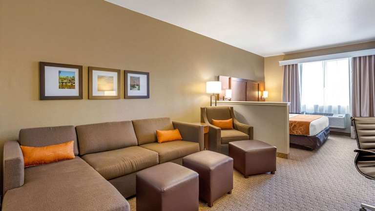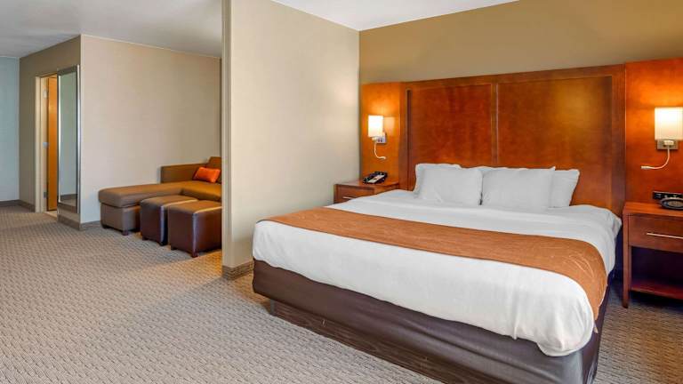 Das Comfort Suites Hotel bietet ein Restaurant und einen Speiseraum. Sie können zwischen Übernachtung inklusive Frühstück oder Halbpension wählen. Das Frühstück wird als Buffet serviert und beinhaltet unter anderem Eier, Waffeln und frisches Obst.