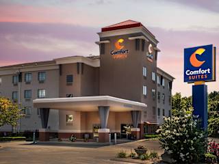 Die 75 Nichtraucherzimmer des Comfort Suites Hotels erstrecken sich über 4 Etagen und sind bequem mit dem Aufzug erreichbar. Das freundliche Personal an der Rezeption steht Ihnen gerne zur Verfügung und das Hotel bietet verschiedene Einrichtungen wie einen Safe, einen Wäscheservice, einen Konferenzraum und eine Münzwäscherei. WLAN steht in der Unterkunft kostenlos zur Verfügung und es gibt auch rollstuhlgerechte Einrichtungen. Kostenfreie Parkplätze stehen für die Gäste zur Verfügung und eine kostenlose Tageszeitung wird angeboten.