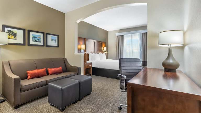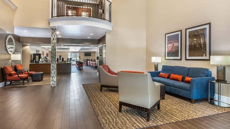 Das Comfort Suites Myrtle Beach Central bietet insgesamt 84 Zimmer, die als Suiten konzipiert sind. Die Ausstattung umfasst eine Rezeption, einen Aufzug, einen Safe, einen Geldautomaten und einen Getränkeautomaten. WLAN ist in den öffentlichen Bereichen verfügbar. Das Hotel ist behindertengerecht eingerichtet und bietet Hilfestellung bei der Buchung von Ausflügen an. Zusätzlich gibt es Annehmlichkeiten wie einen Garten, einen TV-Raum sowie einen Außenpool und einen Wellnessbereich mit Whirlpool. Das Hotel akzeptiert gängige Kreditkarten und bietet kostenfreie Parkmöglichkeiten, je nach Verfügbarkeit.