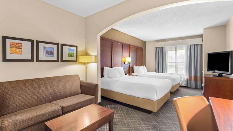 Die Zimmer sind klimatisiert und verfügen über ein Sofabett, einen Kühlschrank, eine Mikrowelle und eine Tee-/Kaffeemaschine. Ein Fernseher und kostenfreies WLAN sind ebenfalls vorhanden. Die Badezimmer sind mit einer Dusche ausgestattet und bieten Kosmetikartikel. Es sind rollstuhlgerechte Zimmer mit barrierefreiem Badezimmer verfügbar.