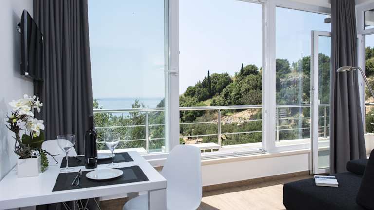 Die Umgebung des Comfort Zovko bietet zahlreiche Möglichkeiten für sportliche Aktivitäten und Freizeitunternehmungen. Unternehmen Sie Spaziergänge entlang der Küste, erkunden Sie die malerische Landschaft oder nehmen Sie an Wassersportaktivitäten teil. Die Pension bietet auch eine Terrasse, auf der Sie sich entspannen und den Meerblick genießen können.