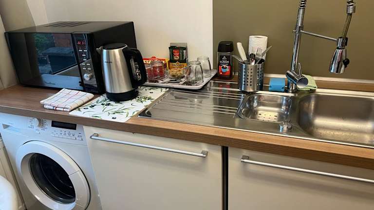 Das Privatzimmer ist mit einem Flachbild-TV ausgestattet und verfügt über eine gut ausgestattete Küche mit Kühlschrank, Geschirrspüler und Mikrowelle. Zur weiteren Ausstattung gehören eine Dusche, kostenlose Pflegeprodukte und ein Haartrockner.