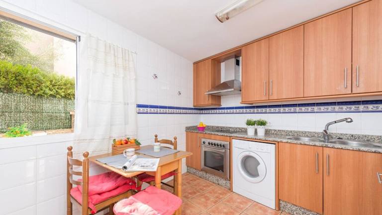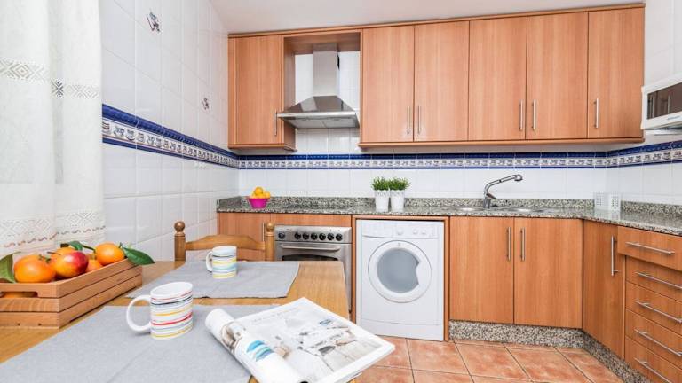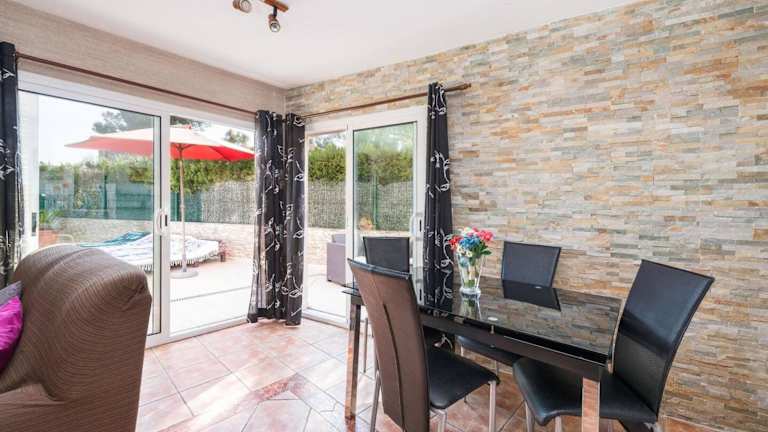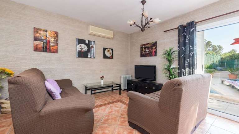 Das Ferienhaus verfügt über drei Schlafzimmer und ist klimatisiert. Zur Ausstattung gehören ein Fernseher sowie eine Küche mit Kühlschrank und Ofen.