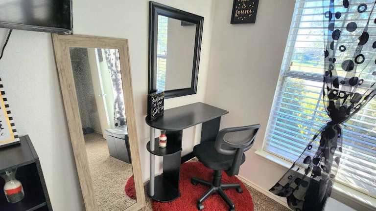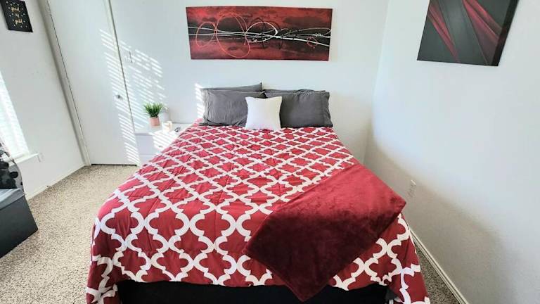 Die Unterkunft Comfortable Queen Bedroom with workspace bietet Übernachtungsmöglichkeiten in Form eines Privatzimmers, das mit Klimaanlage ausgestattet ist. Es handelt sich um ein praktisches Zimmer mit einer Arbeitsmöglichkeit.