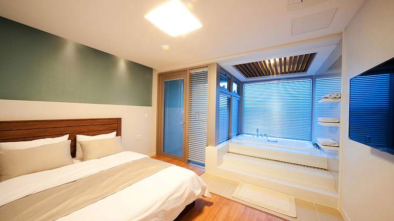 Die Unterkunft befindet sich in Seogwipo, nur 1,1 km vom Sagye Beach entfernt. Zu den Sehenswürdigkeiten in der Umgebung gehören das Jungmun Tourism Complex und das Alive Museum Jeju, die beide etwa 13 km entfernt sind. Der Flughafen Jeju International liegt 40 km von der Unterkunft entfernt.