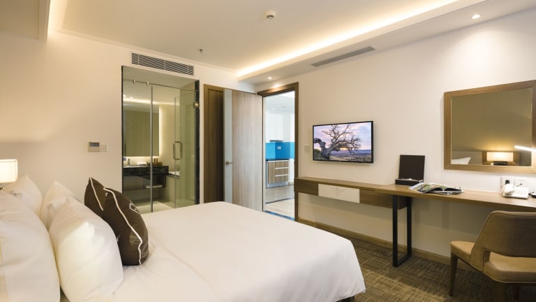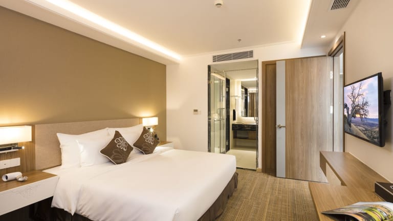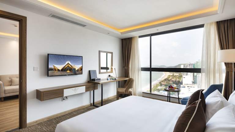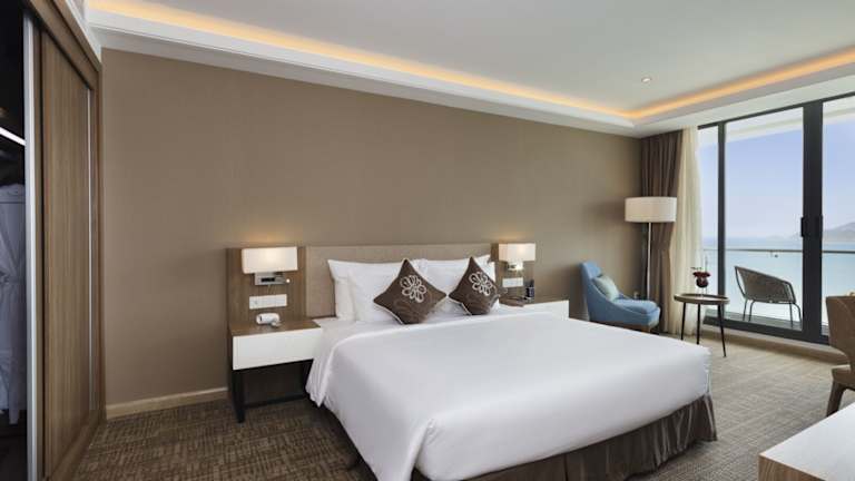 Die 241 Zimmer des Comodo Nha Trang Hotels sind komfortabel und modern eingerichtet. Jedes Zimmer verfügt über Annehmlichkeiten wie kostenloses WLAN, Roomservice und ein eigenes Badezimmer mit Badewanne oder Dusche. Für zusätzlichen Komfort stehen den Gästen auch Hausschuhe zur Verfügung.