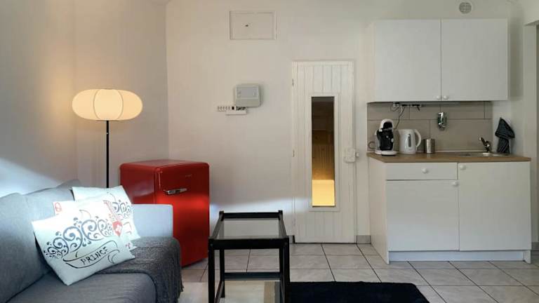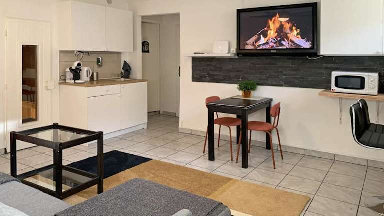 Die Ferienwohnung verfügt über ein Schlafzimmer und eine Küche mit Kühlschrank und Mikrowelle. Zur weiteren Ausstattung gehören ein Flachbild-TV, ein Sitzbereich sowie ein Badezimmer mit Dusche. Handtücher und Bettwäsche werden bereitgestellt.