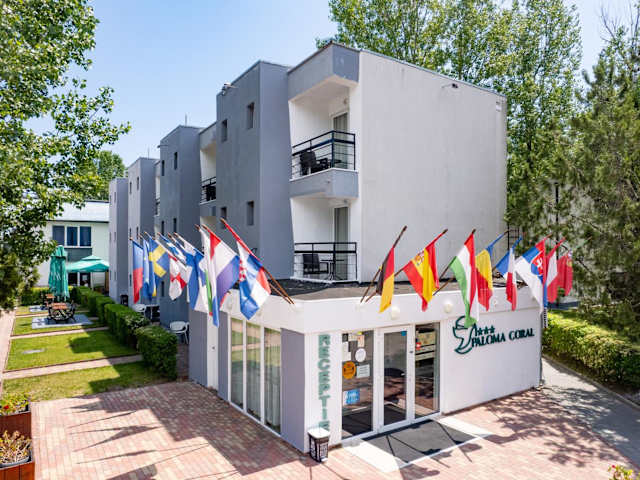 Der Complex Paloma Coral befindet sich nur 2 Gehminuten vom Sandstrand im Norden von Mamaia entfernt. In der Nähe liegen der Aquamagic Aqua Park (5 km entfernt), der Bahnhof Constanta (10 km entfernt) sowie der Flughafen Constanta, welcher mit dem Auto in etwa 40 Minuten erreichbar ist.
