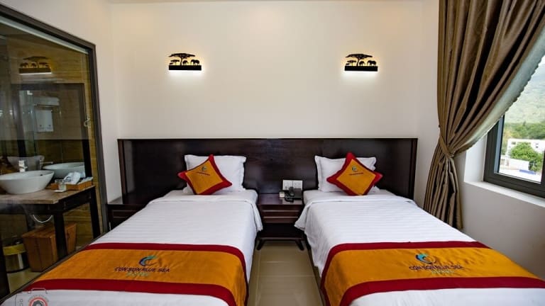 Das Con Son Blue Sea Hotel bietet komfortable und klimatisierte Zimmer mit einer Vielzahl von Annehmlichkeiten. Jedes Zimmer verfügt über einen Schreibtisch, einen Wasserkocher, einen Kühlschrank, eine Minibar, einen Safe und einen Flachbild-TV. Das private Badezimmer ist mit einem Bidet ausgestattet. Es gibt auch einen Kleiderschrank in jedem Zimmer, um Ihre Kleidung und persönlichen Gegenstände aufzubewahren.