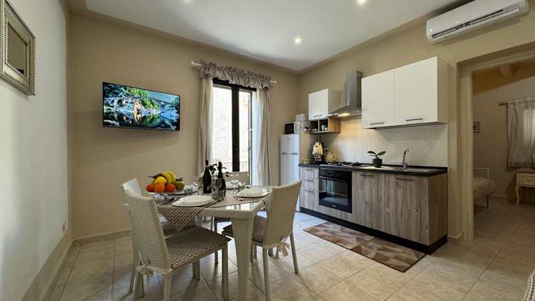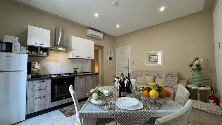 Die Ferienwohnung umfasst 1 Schlafzimmer und ein Wohnzimmer. Eine voll ausgestattete Küche mit Kühlschrank und Kaffeemaschine ist vorhanden. Das Badezimmer ist mit einem Bidet und einer Dusche ausgestattet. Handtücher und Bettwäsche werden zur Verfügung gestellt. Die Unterkunft ist klimatisiert und bietet Nichtraucherzimmer.