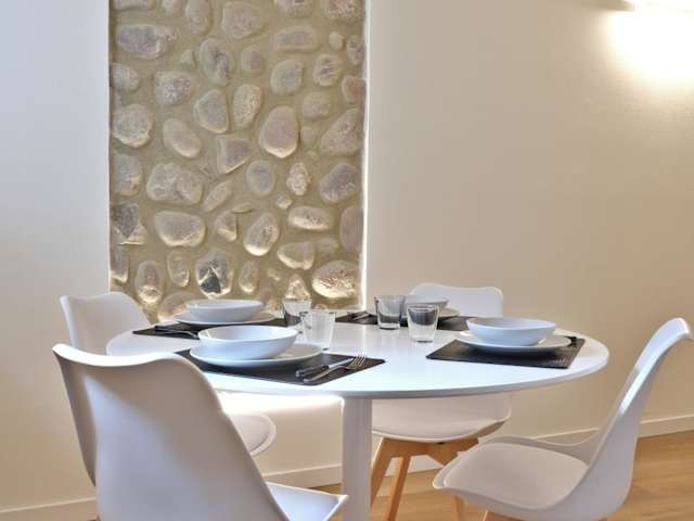 Die Ferienwohnung verfügt über 2 Schlafzimmer und 1 Badezimmer, welches mit einem Bidet, einer Dusche und kostenlosen Pflegeprodukten ausgestattet ist. Zur Ausstattung gehören zudem ein Sitzbereich, ein Essbereich sowie eine Küchenzeile, die mit einem Kühlschrank, einem Geschirrspüler und einer Mikrowelle voll ausgestattet ist. Die Wohnung ist klimatisiert und es sind Nichtraucherzimmer vorhanden.