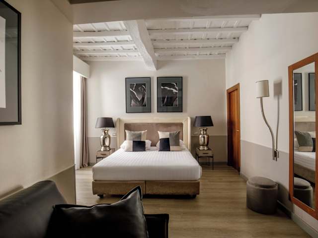 Die Zimmer im Condotti Palace sind geräumig und elegant eingerichtet. Sie verfügen über kühle Fliesenböden und bieten eine angenehme Atmosphäre für Ihren Aufenthalt. Zur Ausstattung gehören ein eigenes Bad mit Dusche, kostenfreies WLAN, ein LCD-TV und eine Minibar. Jedes Zimmer ist sorgfältig gestaltet und bietet Komfort und Entspannung nach einem langen Tag in der Stadt.