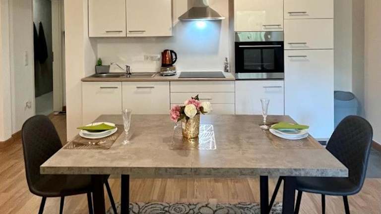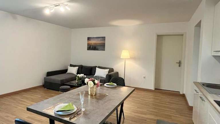 Die Ferienwohnung verfügt über ein Schlafzimmer, ein Wohnzimmer mit Flachbild-TV, eine gut ausgestattete Küche sowie ein Badezimmer mit Dusche und Haartrockner.