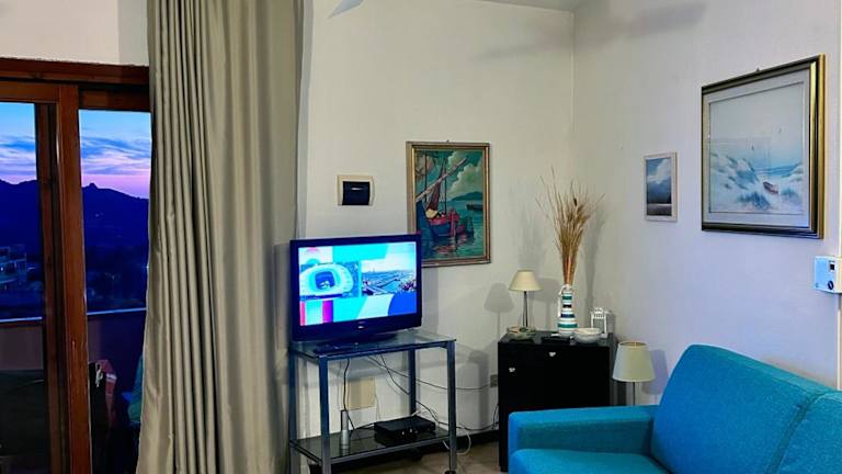 Die Unterkunft Confortevole Trilocale con Vista Mare a San Pasquale in Sardinien bietet einen Balkon mit Meerblick. Sie ist ausgestattet mit einer Terrasse und einem kostenlosen Privatparkplatz.