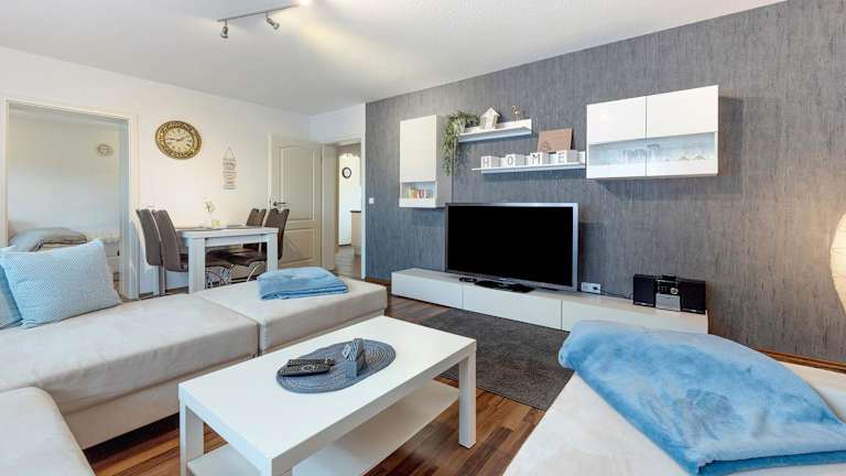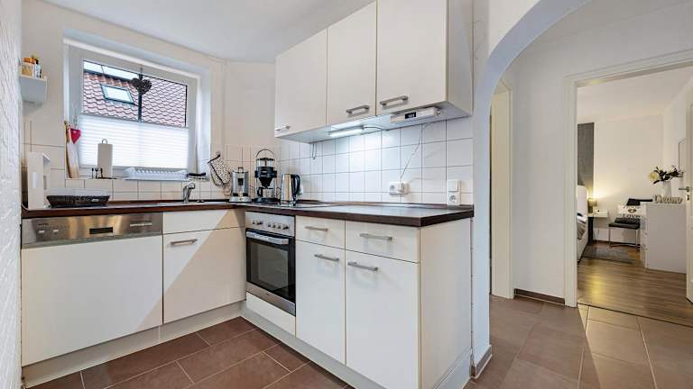 Die Ferienwohnung ist ausgestattet mit 2 Schlafzimmern, einer Küche mit Kühlschrank und Geschirrspüler sowie einem Badezimmer mit Dusche und kostenlosen Pflegeprodukten. Handtücher und Bettwäsche werden bereitgestellt. Zusätzlich sind eine Waschmaschine und Gartenmöbel vorhanden.