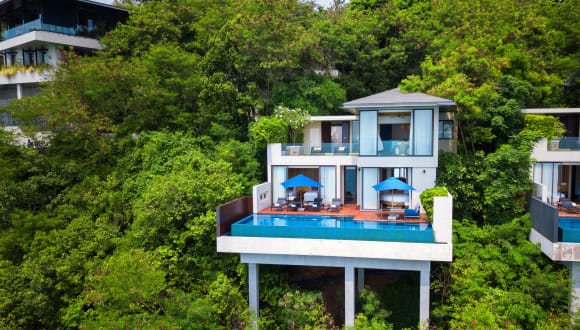 Overlooking the sprawling seascape of the Gulf of Thailand, Conrad Koh Samui Residences offers luxury duplex residences adorning a scenic slope above a private beach in southwestern Ko Samui. Set within 25 acres of virgin jungle, this beautiful hotel in Koh Samui face the luminescent ocean and come with 2 or 3 bedrooms, open-plan living and dining spaces with deluxe wood furnishings and Thai design motifs, kitchenette, private lawn and infinity pool with sundeck, Apple mini-mac and sumptuous bathrooms. Four unique dining venues with stunning gulf panoramas at this Koh Samui hotel offer Thai and Mediterranean cuisine, in-cellar dining and grill classics. The spa encompasses 10 treatment suites with a private deck. There’s an infinity-edge pool, gym and 1,900 ft. of event space.