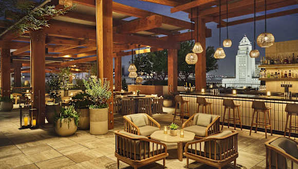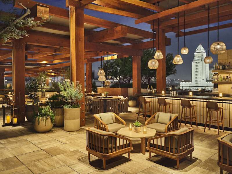 Die gastronomischen Einrichtungen des Conrad Los Angeles umfassen zwei Nichtraucherrestaurants sowie eine Bar und eine Lobbybar. Es werden verschiedene Gerichte zu den Hauptmahlzeiten angeboten, und es stehen vegetarische und glutenfreie Optionen zur Verfügung.