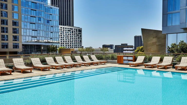 Das Conrad Los Angeles bietet klimatisierte Zimmer und ist mit einer Terrasse sowie drei Pools ausgestattet: Kinderbecken, Indoor- und Outdoor-Pool. Zu den Serviceleistungen gehören eine rund um die Uhr besetzte Rezeption, Zimmerservice sowie eine Gepäckaufbewahrung. Es werden zudem verschiedene Annehmlichkeiten wie ein Safe, ein Geldautomat und ein Minimarkt angeboten.