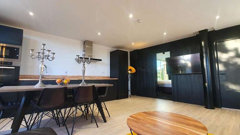 Die Contemporary Dublin Suite with hot tub bietet eine ansprechende Lodge-Atmosphäre mit Whirlpool und einer gut gestalteten Gartenoase. Zur Unterkunft gehören eine Terrasse mit Gartenblick sowie diverse Annehmlichkeiten für einen komfortablen Aufenthalt.