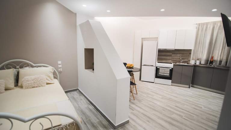Die Studios bieten die Möglichkeit, Ihre eigenen Mahlzeiten in der voll ausgestatteten Küche zuzubereiten. Alternativ finden Sie in unmittelbarer Nähe eine Vielzahl von Restaurants und Cafés, in denen Sie lokale Spezialitäten und internationale Küche genießen können. Erkunden Sie die kulinarische Vielfalt von Korfu und lassen Sie sich von den Geschmäckern der Insel verwöhnen.