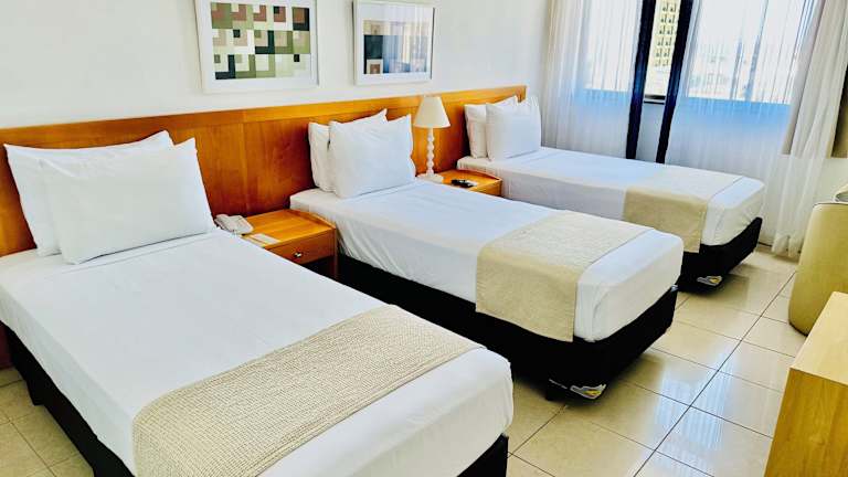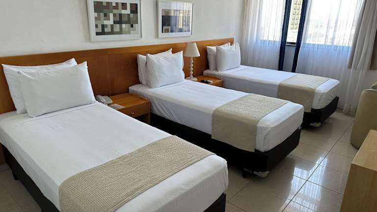 Die Zimmer im Copacabana Mar Hotel sind geräumig und hell gestaltet, mit neutralen Farben und lokalen Kunstwerken an den Wänden. Jedes Zimmer verfügt über Klimaanlage, kostenfreies WLAN, Kabel-TV, Telefon und Minibar.