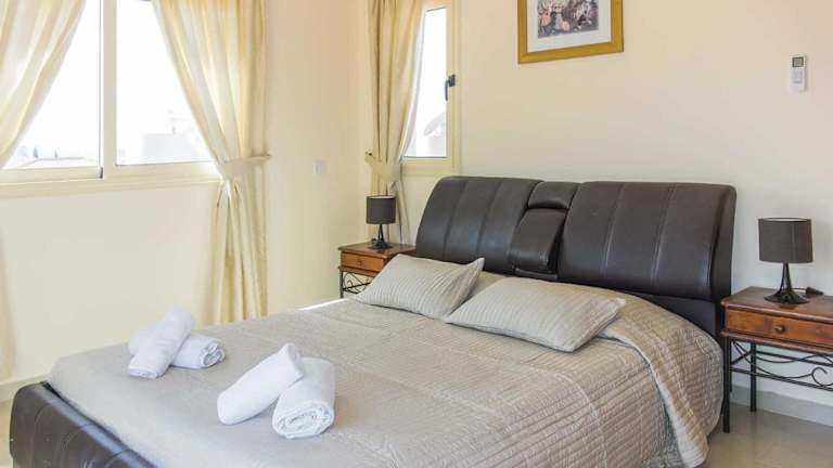 Die Villa verfügt über Klimaanlage und besteht aus 3 separaten Schlafzimmern. Ein Wohnzimmer, eine voll ausgestattete Küche mit Kühlschrank und Geschirrspüler sowie 3 Badezimmer sind ebenfalls vorhanden. Handtücher und Bettwäsche werden bereitgestellt.