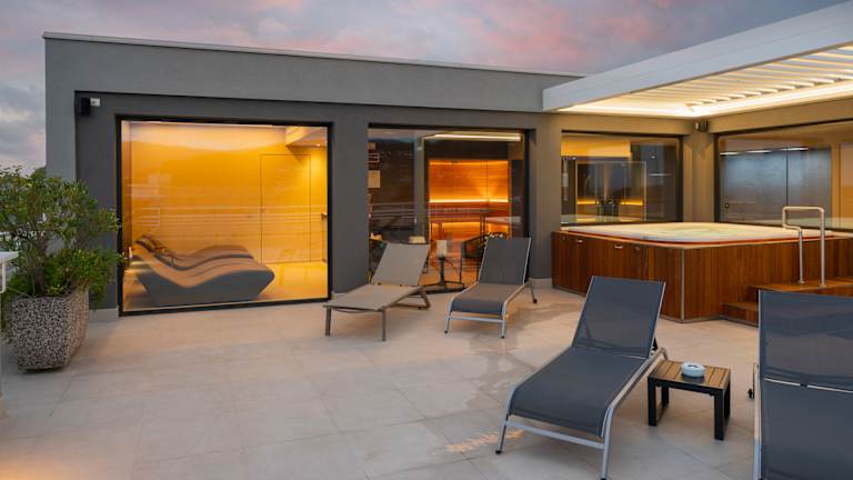 Hotel 100 Meter vom Meer entfernt mit Restaurant, Parkplatz, Garten und Wellnesscenter mit Fitnessstudio mit Meerblick