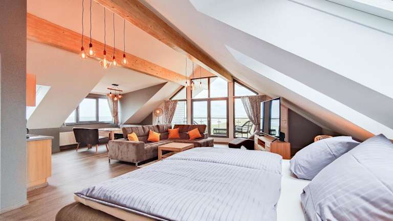 Die Unterkunft befindet sich direkt am Nordstrand auf Norderney und bietet einen direkten Zugang zum Strand.