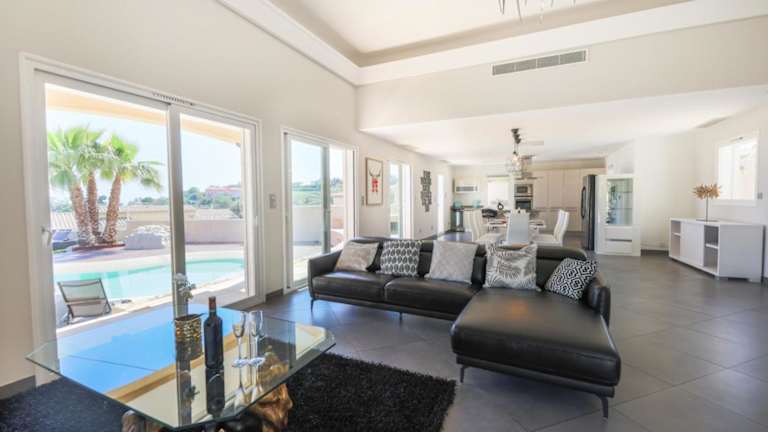 Die Villa bietet geräumige und komfortable Zimmer mit modernem Design. Es gibt 3 Schlafzimmer und 2 Badezimmer, die mit Bettwäsche und Handtüchern ausgestattet sind. Zur Ausstattung gehören auch ein TV, ein Essbereich und eine voll ausgestattete Küche, in der Sie Ihre eigenen Mahlzeiten zubereiten können. Genießen Sie den Außenpool und entspannen Sie auf der Terrasse mit Meerblick.