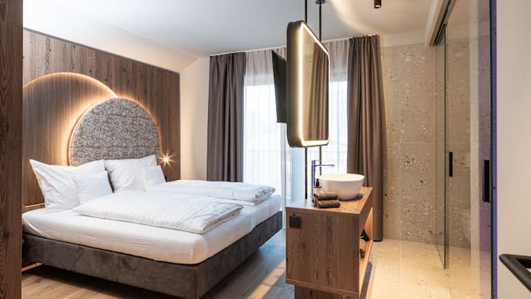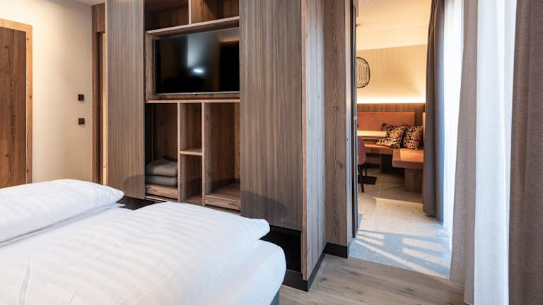 Unsere charmanten Suiten für zwei bis vier Personen sind ideal für Paare oder für einen entspannten Urlaub mit Freunden. Für Familien, die Gemütlichkeit und Platz schätzen, sind unsere Family Suites die ideale Wahl. Geräumig, durchdacht und mit allem ausgestattet, was es für einen unbeschwerten Aufenthalt braucht – hier fühlt sich die ganze Familie vom ersten Moment an wohl. Gemeinsam Zeit verbringen, entspannen und die Schönheit Südtirols erleben – genau so darf Urlaub sein. Und dann sind da noch die Rooftop Suites: Lassen Sie sich überraschen!