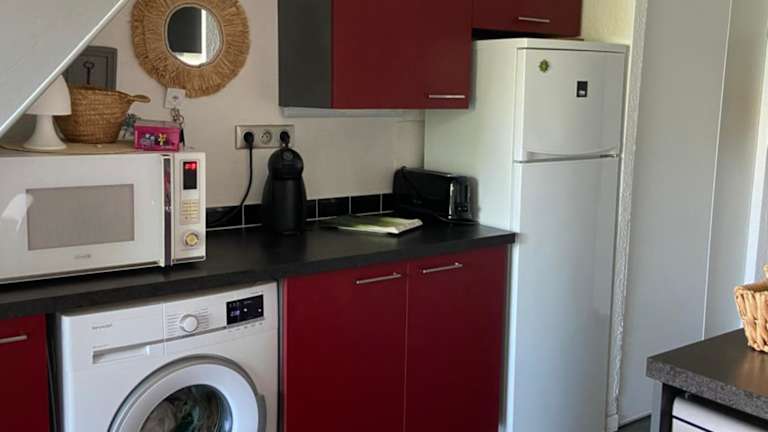 Die Ferienwohnung verfügt über 1 Schlafzimmer, ein Wohnzimmer und eine voll ausgestattete Küche mit Kühlschrank und Kaffeemaschine. Das Badezimmer ist mit einer Dusche und einem Haartrockner ausgestattet. Handtücher und Bettwäsche werden bereitgestellt. Die Unterkunft ist klimatisiert.