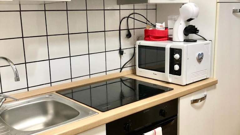 Die Ferienwohnung verfügt über 1 Schlafzimmer, ein Wohnzimmer und eine voll ausgestattete Küche mit Kühlschrank und Kaffeemaschine. Ein Badezimmer ist mit einem Bidet und einer Dusche ausgestattet. Handtücher und Bettwäsche sind vorhanden.