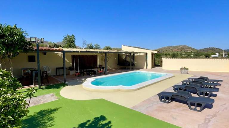 Das Cortijo Alba in Vélez Blanco bietet Ihnen einen erholsamen Urlaub inmitten der Natur. Genießen Sie den saisonalen Außenpool, den Garten und die Gemeinschaftslounge mit kostenfreiem WLAN. Das Ferienhaus verfügt über 2 Schlafzimmer, eine gut ausgestattete Küche und ein komfortables Wohnzimmer. In der Umgebung können Sie verschiedene Aktivitäten wie Wandern, Radfahren und Darts ausüben. Entspannen Sie auf der Terrasse, nutzen Sie den Kinderspielplatz und den Grill. Der internationale Flughafen Murcia ist 101 km entfernt und ein kostenpflichtiger Flughafentransfer wird angeboten.