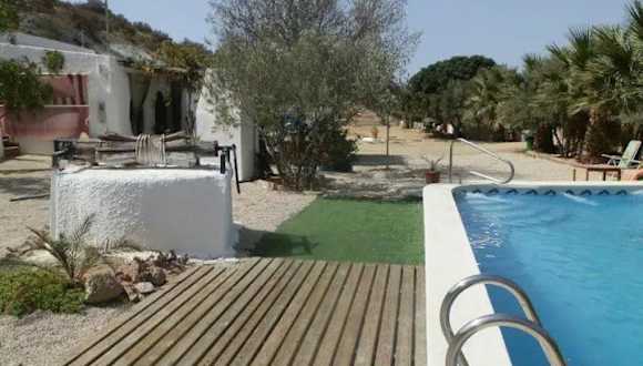 Das Cortijo casa rural "La cueva" bietet eine ländliche Atmosphäre mit einem saisonalen Außenpool, einem Garten und einer Terrasse, die zum Entspannen einladen.