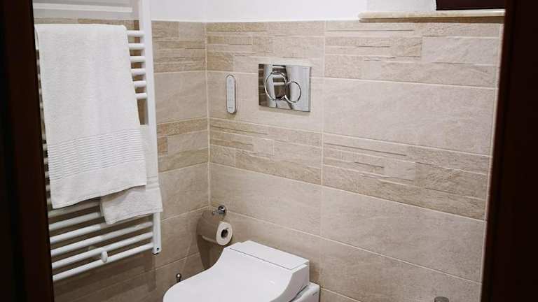 Die Ferienwohnung besteht aus 1 Schlafzimmer und einem Wohnzimmer. Eine voll ausgestattete Küche mit Kühlschrank und Kaffeemaschine, sowie ein Badezimmer mit Bidet und Dusche sind vorhanden. Handtücher und Bettwäsche werden bereitgestellt.