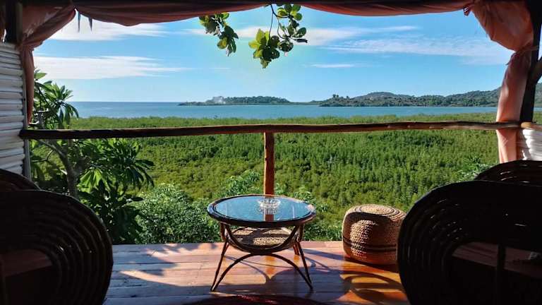 Das Corto Novo Maison d'hôtes-Camping ist idyllisch in einem tropischen Garten gelegen und bietet einen atemberaubenden Panoramablick auf das Meer und die Mangroven. Der Strand Andilana ist nur 5 Minuten entfernt und der Mont Passot sowie der internationale Flughafen Fascène sind in kurzer Zeit erreichbar. Diese ideale Lage ermöglicht es den Gästen, die Schönheit von Nosy Be zu entdecken und gleichzeitig die Nähe zum Meer und zur Natur zu genießen.