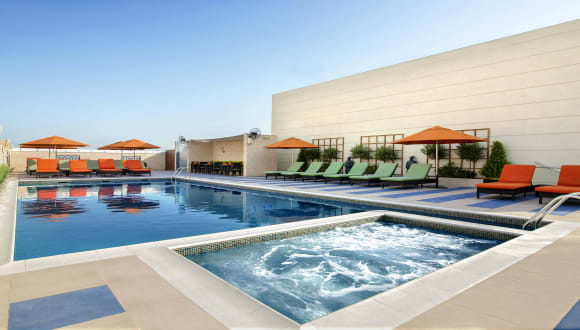 Das Hotel bietet verschiedene Sport- und Freizeitmöglichkeiten. Dazu gehören ein Außenpool sowie ein Whirlpool im Wellnessbereich. Auch eine Sonnenterrasse mit Liegestühlen und Schirmen steht zur Verfügung. Im Fitnessstudio können Gäste aktiv werden, während Aerobic-Kurse angeboten werden. Wellnessangebote wie Spa, Sauna, Dampfbad und Massage-Anwendungen runden das Angebot ab.