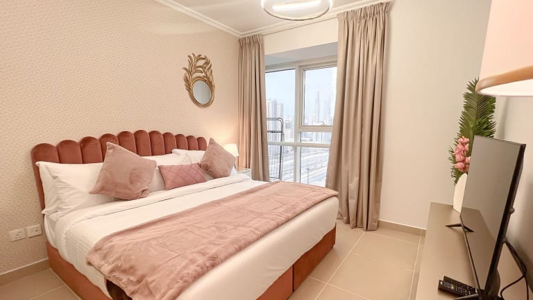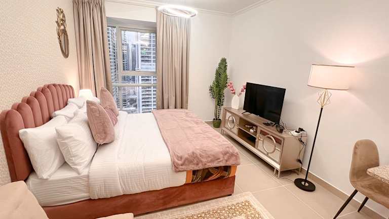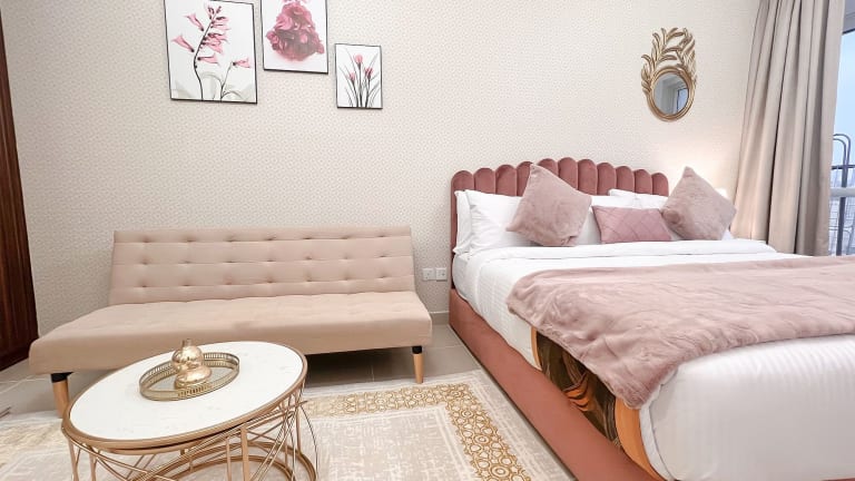 Cosmos Living Cozy Studio Near Dubai Marina bietet Übernachtungsmöglichkeiten in einem klimatisierten Studio. Die Unterkunft beinhaltet ein externes Schwimmbad, einen eigenen Strandbereich sowie ein Restaurant und eine Bar. Die Rezeption ist mehrsprachig und bietet Informationen zur Umgebung an.