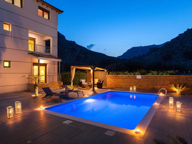 Die Unterkunft bietet ein modernes Ambiente mit kostenlosem WLAN, Klimaanlage sowie Zugang zu einem Garten mit einem Außenpool. Zur Ausstattung gehören zudem eine Terrasse mit Bergblick, ein Sitzbereich, ein Satelliten-Flachbild-TV und eine voll ausgestattete Küche.