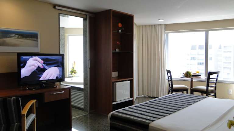 Das Hotel bietet 132 Zimmer auf 22 Etagen, die mit einem Aufzug erreichbar sind. Die Zimmer sind komfortabel eingerichtet und verfügen über eine Klimaanlage, eine Heizung und eine Kochnische. Ein Balkon oder eine Terrasse bietet einen schönen Blick auf die Umgebung. Zur weiteren Ausstattung gehören eine Minibar, ein Fernseher, kostenfreies WLAN und ein eigenes Badezimmer mit einer Badewanne oder Dusche.