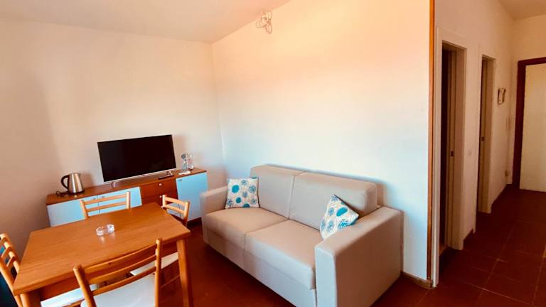 Die Ferienwohnung verfügt über ein Schlafzimmer, ein Wohnzimmer und eine voll ausgestattete Küche mit Kühlschrank. Das Badezimmer ist mit einem Bidet und kostenfreien Pflegeprodukten ausgestattet. Klimaanlage ist vorhanden und Bettwäsche sowie Handtücher können gegen Aufpreis bereitgestellt werden.