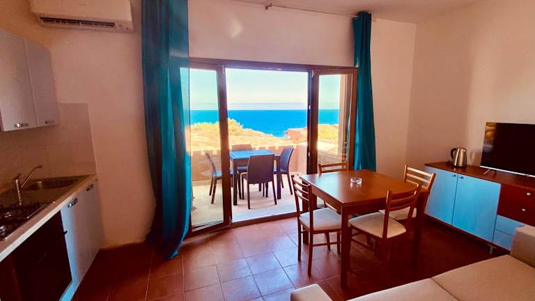 Costa Paradiso Villaggio maya GP 2 15 Bilocale vista mare bietet eine Ferienwohnung mit Balkon und Meerblick. Die Unterkunft ist privat geführt und hat eine Terrasse sowie einen kostenlosen Privatparkplatz. Es gibt spezielle Regelungen für den Check-in, einschließlich der Vorlage eines Lichtbildausweises und der Notwendigkeit, im Voraus eine Ankunftszeit mitzuteilen.