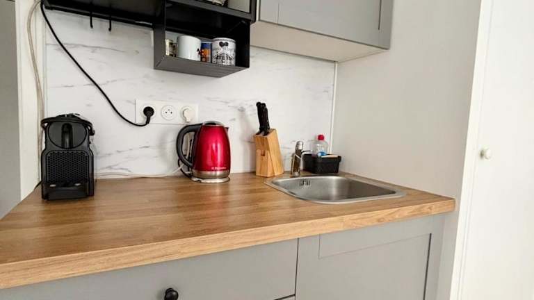 Die Ferienwohnung verfügt über ein Schlafzimmer, eine voll ausgestattete Küchenzeile mit Kühlschrank und Mikrowelle sowie ein Badezimmer mit Dusche und kostenlosen Pflegeprodukten. Handtücher und Bettwäsche werden zur Verfügung gestellt. Die Zimmer sind schallisoliert und die Unterkunft bietet Nichtraucherzimmer sowie Familienzimmer.